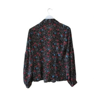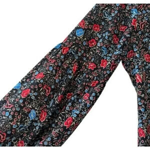 Free People Ruffle Floral Poet High Neck Button Front Ballon Sleeves Women’s Blouse SZ S #2008