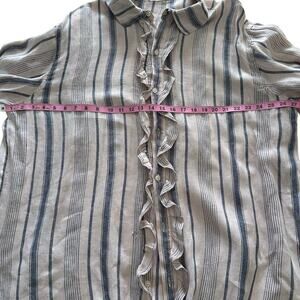 Free People - Ruffle Front Shirt - Extra Large (pink/denim stripe color)