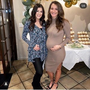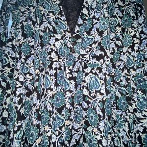 Worn once. Super flattering. Blue print. 3 button detail on the front. Ruffles on the bottom with bell sleeves.