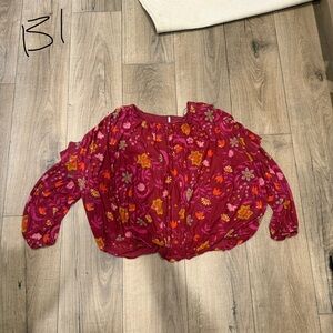 Free People Ruffled 3/4 Sleeve Blouse Floral Large
