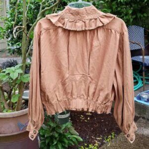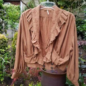 Free People Ruffled Jacket Linen Blend Embroidery Bishop Sleeves Ginger Sm NWOT