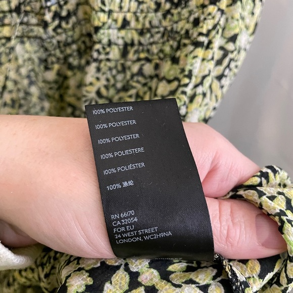 **Ruffle neck with tie **Fabric covered buttons **Yoked shoulders **Ruffled elastic at wrist sleeves