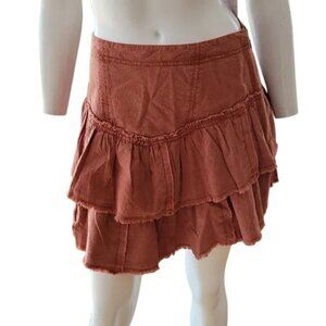 Free People ruffles in the sand petrichor rust orange mini skirt. Side zipper closure. Good condition. NO TRADES.