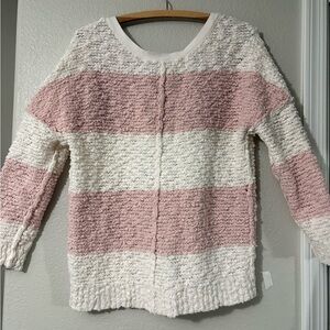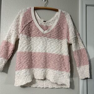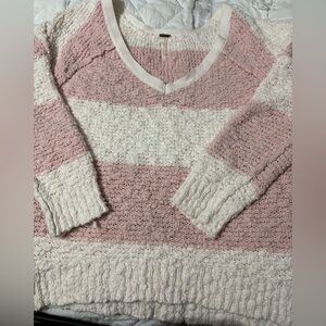 Free People Rugby Songbird stripe chunky pink/white long sleeve V neck sweater