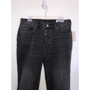 Free People Rugged Black Distressed Ankle Fly Button Straight Leg Jean - 29