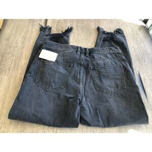 These rugged black jeans are perfect for adding a grunge piece to your wardrobe. They are a fly button closure and a straight leg style. The ankles are distressed, giving them a cropped look. They are a mid-rise. New with tags.