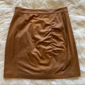 Free People Rumi Ruched Faux Leather Mini Skirt Camel Brown Size XS