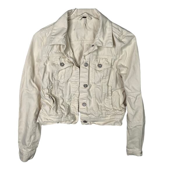 Free People Rumors Cropped Denim Jean Jacket FLAW Ecru Ivory Womens XS