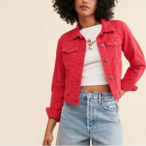 Adorable jacket with a striking red hue