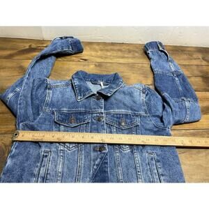 The Free People Rumors Denim Jacket in Indigo is a stylish and versatile addition to any woman's wardrobe. Made from cotton denim with a polyester insulation, this short jacket features a button closure and a regular fit. Perfect for casual occasions in the winter, fall, or spring, this boho western chic piece is machine washable and comes in a classic blue color. Ideal for those looking for a festival, coastal cowgirl, or peasant-inspired look, this jacket embodies the laid-back yet trendy style that Free People is known for.pre owned good condition we ship fast measurements are in the pictures