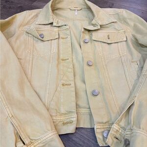 Free People Rumors Denim Jacket in Light Yellow