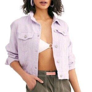 Free People Rumors Denim Jacket size XS Boxy Lavender Purple Pastel Y2K Boho
