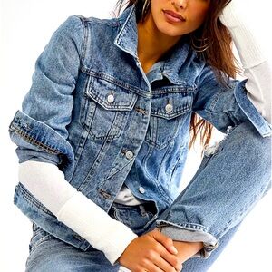 Free People Rumors Denim Jacket in Light Indigo.