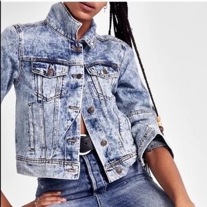 Free People Rumors Indigo Acid Wash Denim Jacket