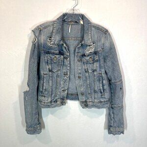 Free People Rumors Ripped Distressed destroyed Denim Jean Jacket Size XS