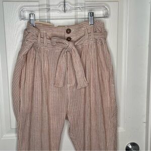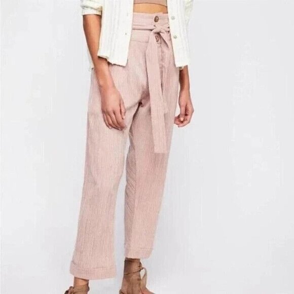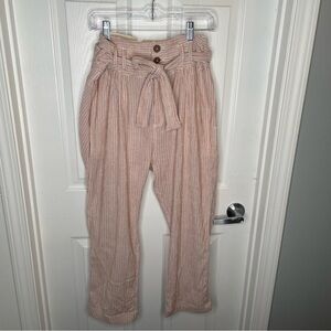 Free People Rumors Yarn Dye Harem Pants Red Stripe High Waist Tie Belt Boho 8