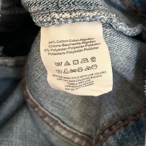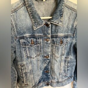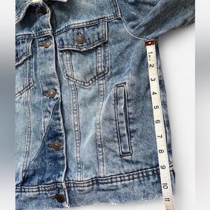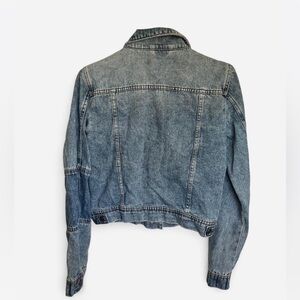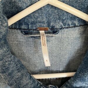 Free People Rumors blue cropped denim jacket with patchwork detailing, size S