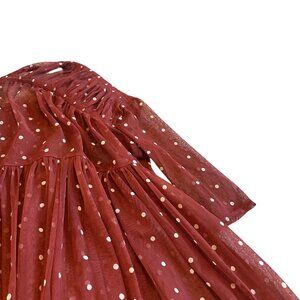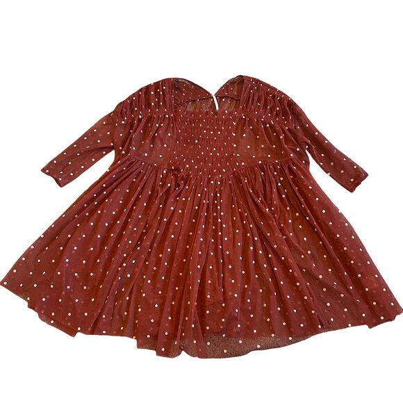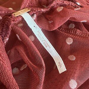 Free People Rust Orange Polka Dot Babydoll Top Sheer Chiffon Size Small Women's