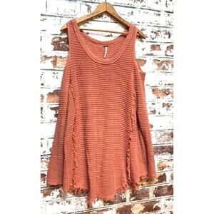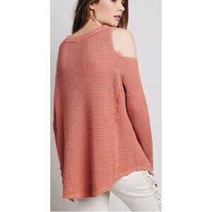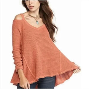 Free People Rust Pure Cotton Moonshine Cold Shoulder Knit V-Neck Thermal Sweater