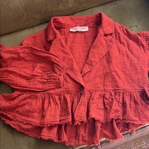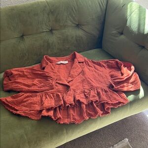 Free People burnt orange oversized top in size small but can fit a medium just fine. Worn 5x at the most.