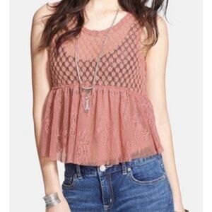 Free People Rustic Pink Lace Ruffle Sleeveless Crop Tank Top Sz S Sheer