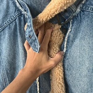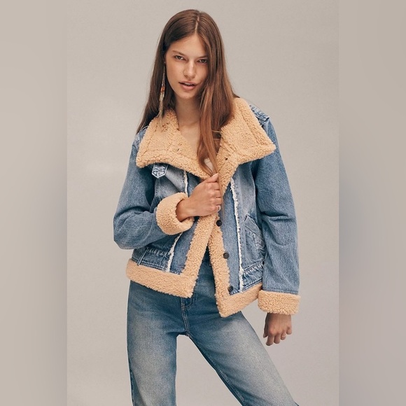 Keywords: Free People Rylee jacket, denim shearling jacket, faux fur lined denim coat, boho winter jacket, oversized jean jacket, Free People outerwear