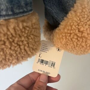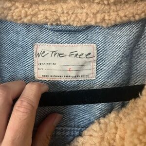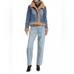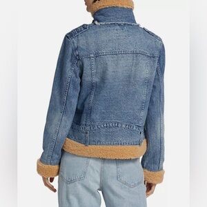 Free People Rylee Denim Jacket Faux Shearling Lined – Med Wash – Size Large NWT
