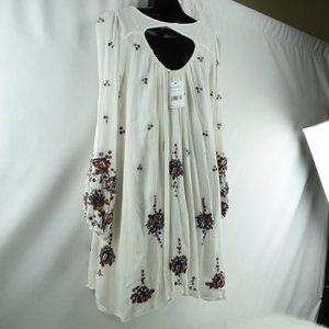 Make a flirtatious entrance in a breezy mini dress embellished with colorful embroidery.
