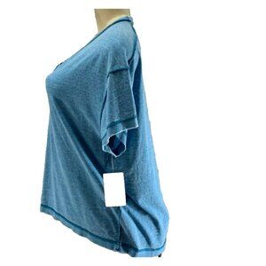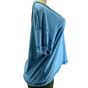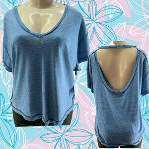 Item: Free People S Baja Blue V-Neck Raw Edges Relaxed Fit Open Back Short Sleeve Tee