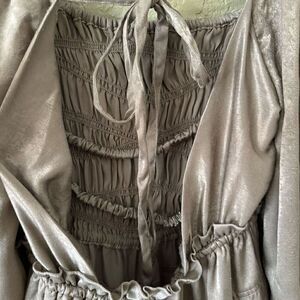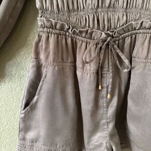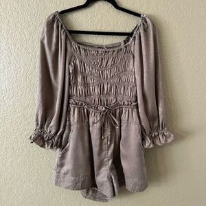 Free People S Cassidy Shorts Romper Smocked Open Back Smoky Beige Cottagecore