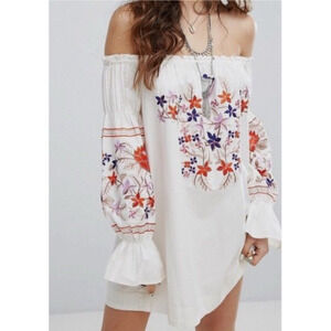 Free People S Fleur Du Jour Off Shoulder Dress Embroidered Floral Oversized B3