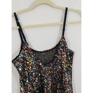 The Free People SLIP DRESS is a stylish and shimmering tunic shirt top perfect for a party or cocktail event. Made with sheer sequins in a vibrant multicolor design, this dress features a flattering above knee length and a sexy spaghetti strap sleeve style. Add a touch of clubwear flair to your wardrobe with this elegant and eye-catching piece from Free People.