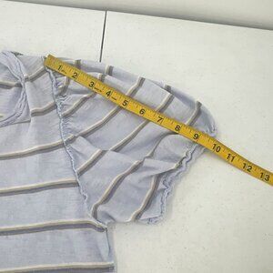 Free People S/P We The Free Stripe Crop Top Raw Seam Puff Sleeve Boho Tee