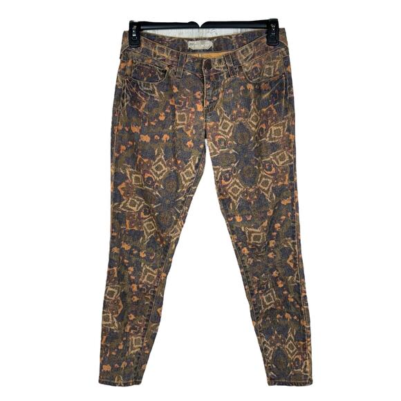 Free People SZ 28 Tribal Ankle Jeans Zip-Fly Low-Rise Pockets Skinny Leg Multi