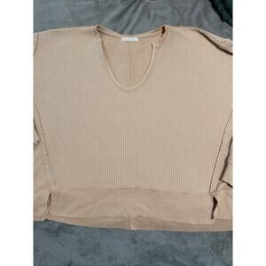 Free People SZ Medium Oversized Beige Boxy Waffle Long Sleeve Thermal Top Women