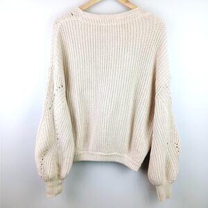 Free People SZ S All Day Long V Sweater Sand OB1059892 Chunky Fisherman