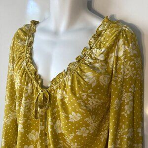 Free People SZ S NWT yellow & white floral peasant style bodysuit bell sleeve