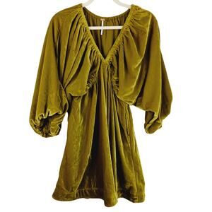 Effortlessly femme and flattering, this billowy mini is featured in a velvet fabrication and A-line style with a plunging V-neckline and balloon sleeves.