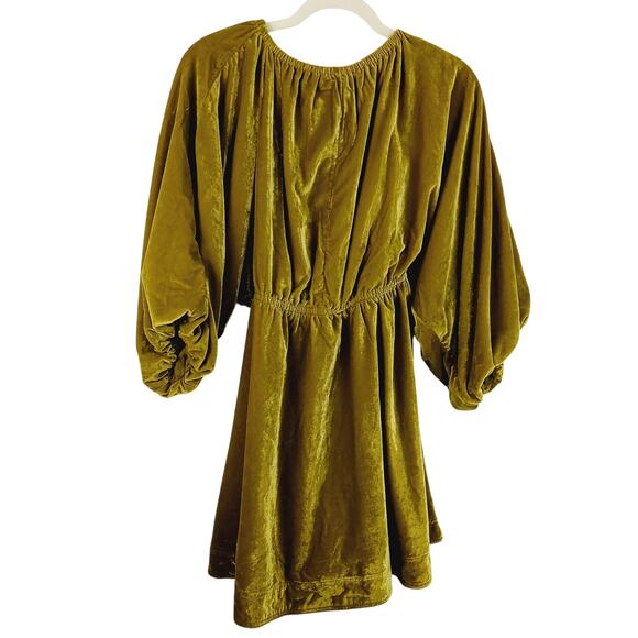 Effortlessly femme and flattering, this billowy mini is featured in a velvet fabrication and A-line style with a plunging V-neckline and balloon sleeves.