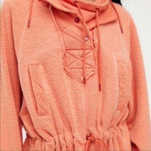 The coolest way to do a knit pullover, this contemporary version from our We The Free collection is featured in a fuzzy fabrication and oversized, slouchy silhouette with detailed collar and drawstring waistband for added shape.