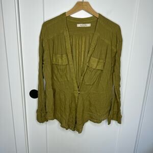 Free People Safari Sheer Green Lightweight Button Top Size Large