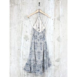 Free People Safari Sun Dress Swirls of paint-like print set an artful, eclectic ambiance with free people's safari sun dress. Polyester. Hand wash. Imported. Halter tie neck, elasticized waist, ruffle front detail. Ruffled high/low hem, lined, pullover style. Color: Tea
