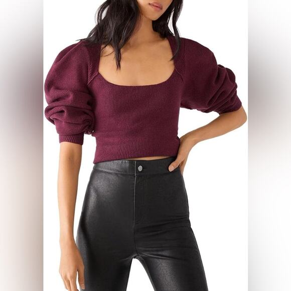 Free People Saffron Ribbed Short Crop Sweater Size XS Preppy Cutout Backless