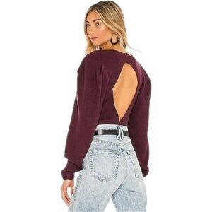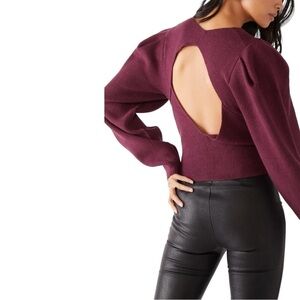 Free People Saffron Top in Pomegranate Wine Small NWT NEW Puff Sleeve Open Back