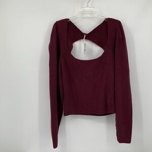 Free People Saffron open back ribbed sweater keyhole Pomegranate wine new Medium