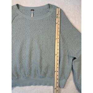 Free People Sage Green Gray Blue Pullover Top Boucle Sweatshirt Oversized XS M
