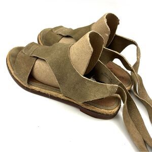 Free People Sage Green Suede Ankle Wrap Tie Bohemian Sandals size 8.5