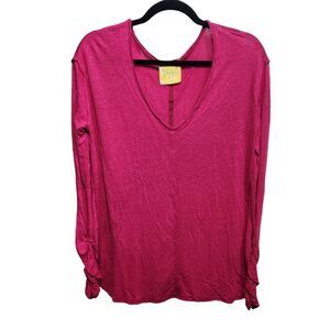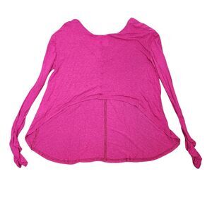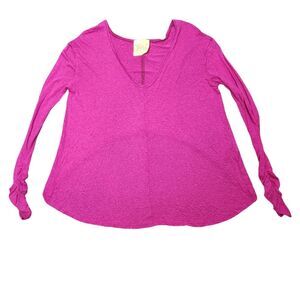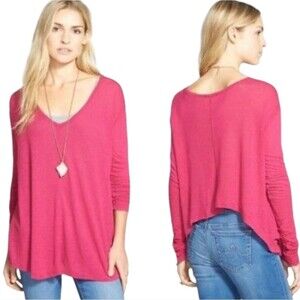 Free People Sahara Top Linen Long Sleeve T Shirt Pink Oversized Crop Back Flowy