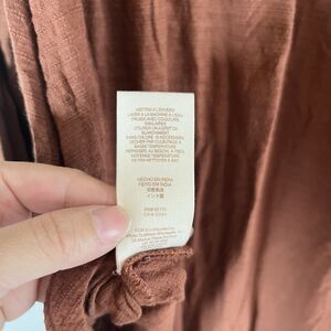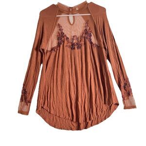 Free People Saheli Brown Long Sleeve Shee Yoke Embroidered Trim Blouse Womens S