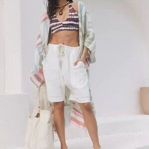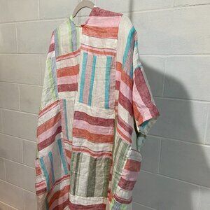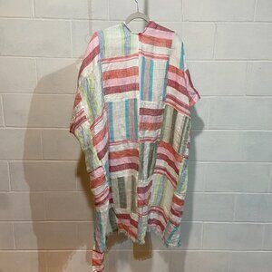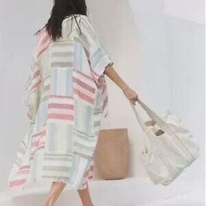 Free People Sail Away 100% Linen Patchwork Kimono Coverup -OS fits most NWOT